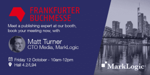 I’m up next for the Office Hours in the MarkLogic stand 4.2 L94 – 10:00-12:00. I know, Friday morning! But if you have missed us at the fair and want to chat, I’m around to discuss any subject…as long as it’s about the importance of data to publishing!