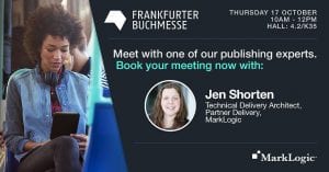 Thursday on our stand, Jen Shorten of MarkLogic will hold her office hours from 10am-12pm. Jen has led some of the industry’s most innovative projects, linking content to data and helping organizations such as Pearson, OECD, ISO, and more.