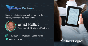 Ernst Kallus from Stratigem Partners will then take his turn on the stand from 2-4pm. Ernst has been running transformation projects at publishers like OUP and Emerald and is now helping organizations better leverage their data.