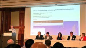 Andrew Preson from Publons talked about using data to help make peer review a more measurable academic output. To date the efforts have been largely behind the scenes. But with their platform to register and record reviews, they can not only highlight individual’s contributions, but also start to see trends. The graph in the picture shows the distribution of reviewers by subject area. In some disciplines, the number of reviewers are evenly distributed. While in others only a small portion of the population do most of the work.