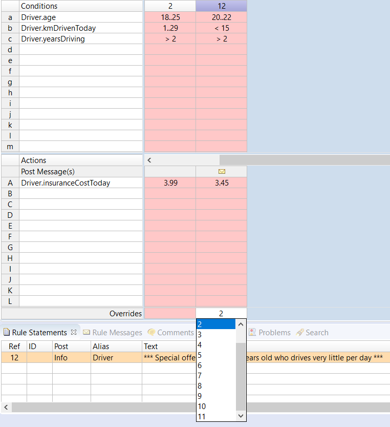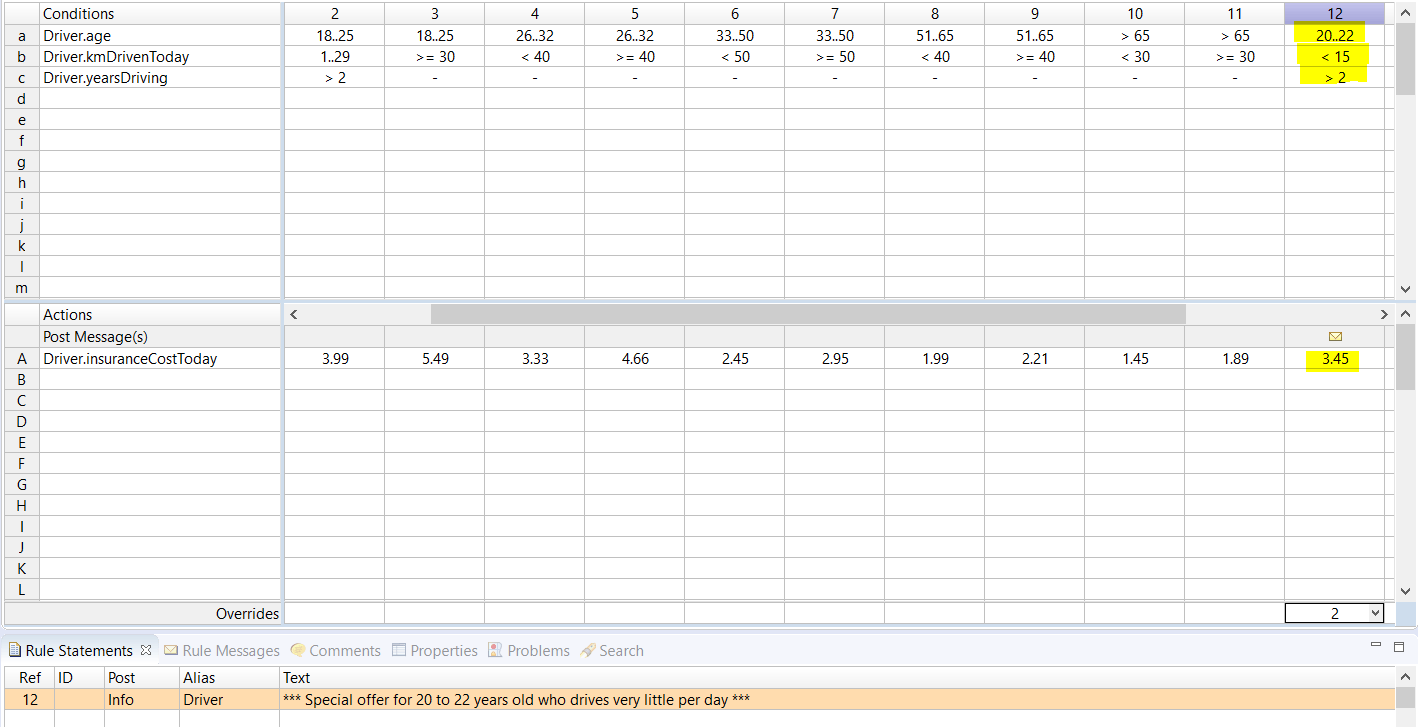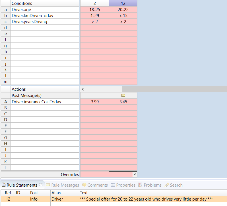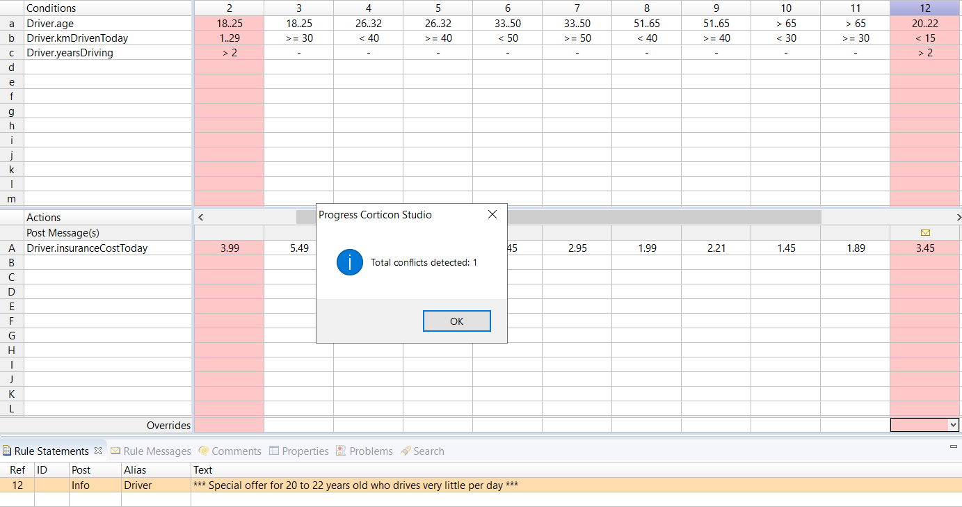 We are going to use a simplified version of a vehicle insurance cost calculation decision service to understand what conflicts are. We will see how they are easily detected and resolved in Corticon.