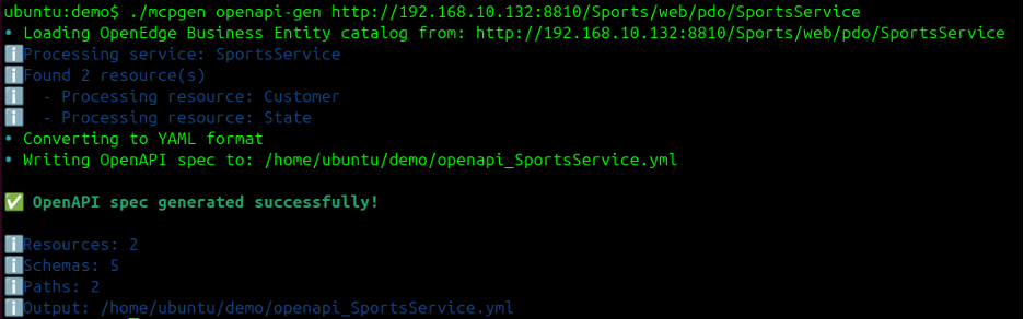 1. ./mcpgen openapi-gen <url-to-openedge-service>