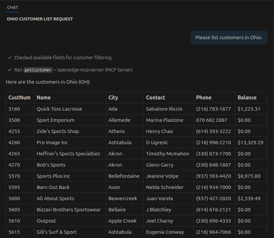 One of the most powerful parts of the MCP Server is the ability to securely expose OpenEdge services to AI models like Claude through GitHub Copilot in VS Code.