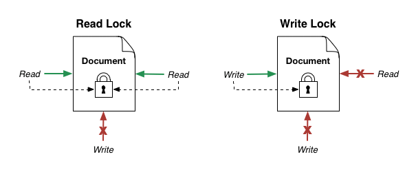Figure 1: A read lock allows reads by other transactions but blocks other writes. A write lock blocks reads and writes by other transactions.