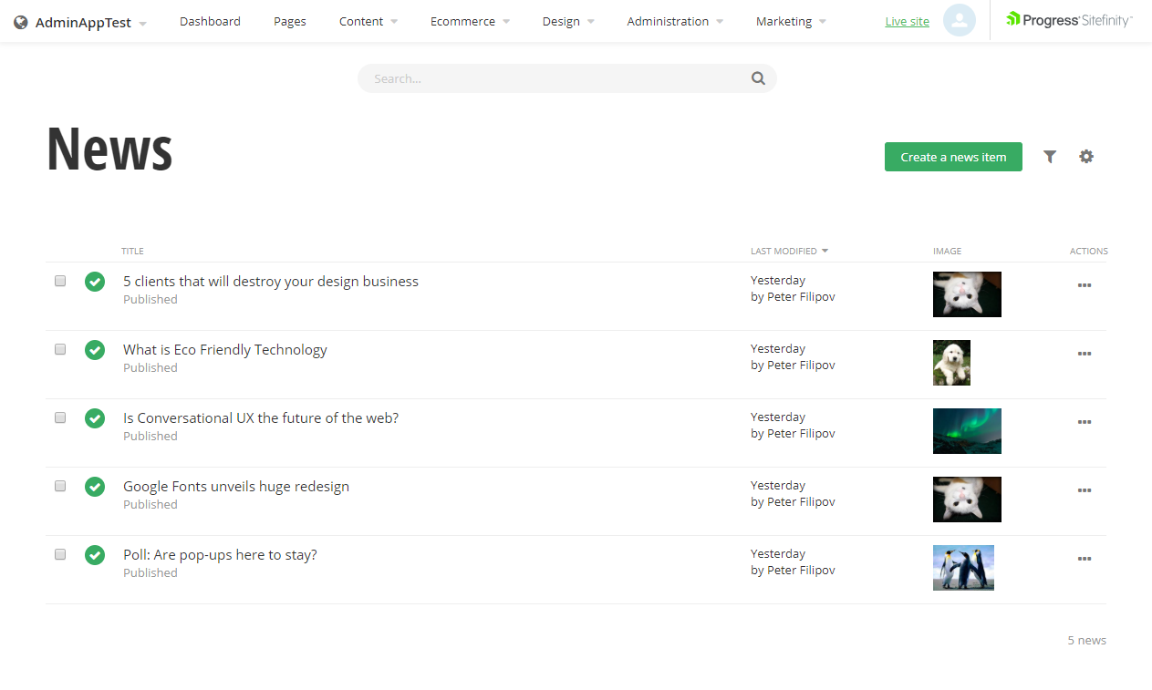 When we released Progress Sitefinity 10.2, we debuted a Beta version of the new Admin Panel in the content creation area. If you haven’t familiarized yourself with it yet, please go back and read this post. In Sitefinity 11.0 this capability will become the default for new projects (for existing projects it needs to be switched on). This can be done on the website or user level.