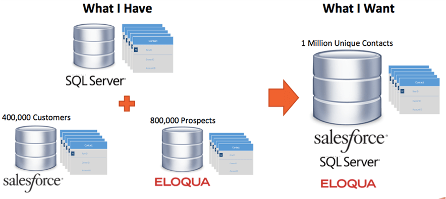 The second scenario integrated three data sources from difference databases without duplication. Once consolidated, we were able to segment all the contacts them with ease to deliver real-time dashboards.