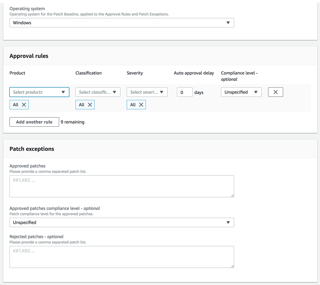 $rule = New-Object Amazon.SimpleSystemsManagement.Model.PatchRule