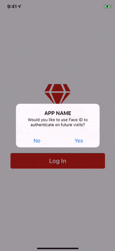 To see what this all looks like in action return to your app and run through the login process again. After you complete the login, you should see the confirmation prompt asking you if you want to use a fingerprint or face sensor.