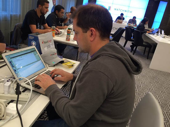 Vendors as diverse as MarkLogic, the Enterprise NoSQL database platform; Watchwith, a TV technology company known for helping TV studios create and leverage programming metadata for advanced multi-platform user experiences; and Oculus, a virtual reality company, all provided access to their technologies – as well as professional teams to instruct, guide and offer advice. The Watchwith and MarkLogic teams were shoulder-to-shoulder with their teams and actually built an API during the wee hours – which a few of the couple teams took full advantage of!