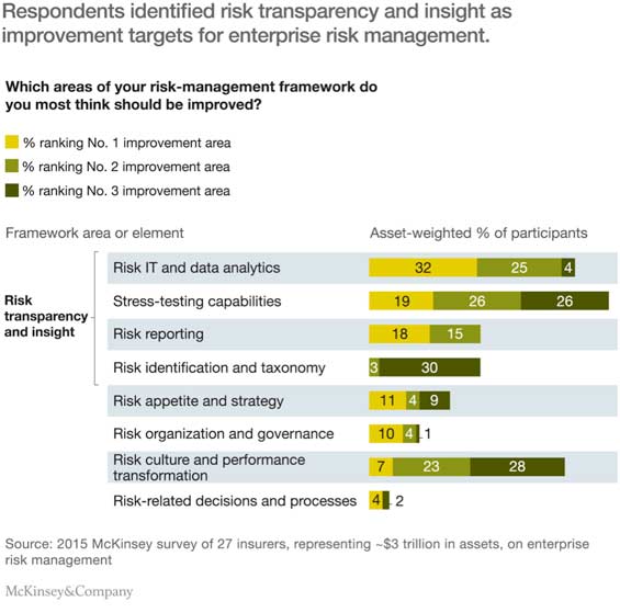 But a McKinsey survey regarding enterprise risk management in insurance, published in July 2016, found that one-quarter of respondents cited “data governance and quality” and another quarter cited “automation and speed of data gathering” as their initial improvement priorities. Before using data, you have to validate and centralize it — and that is where the industry gets bogged down.
