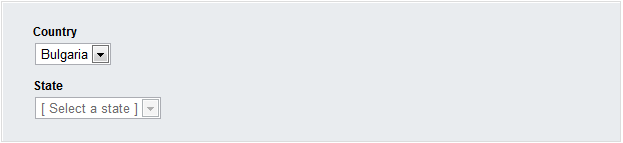 Field controls are a powerful instrument when editing data in the Sitefinity backend. Sometimes however you need to change a list of possible choices in a field control depending on another field control. This blog post describes how to implement a Country and State dropdown field controls, where the State dropdown depends on the current selection of the Country dropdown. Since this is just a tutorial we will limit the countries to three - USA, Canada and Bulgaria. The first two allow the selection of states, while the last one doesn't.
