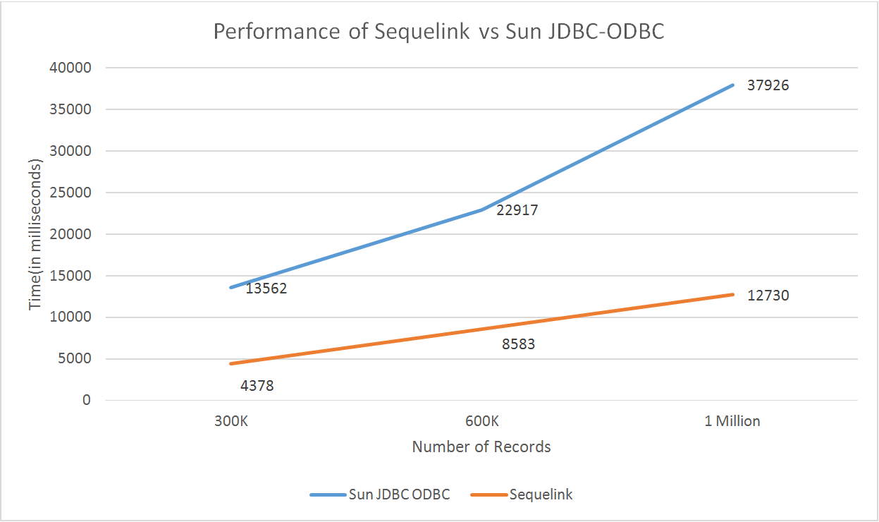 Performance tests reveal that the Progress DataDirect Sequelink JDBC-ODBC adapter is up to 310% faster than the Sun JDBC-ODBC bridge.