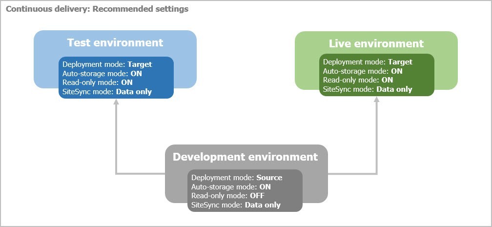 If you have more than one environment, it is strongly recommended to have the following setup. This will ensure smooth upgrades without manual work and minimum downtime of your Live environment (Production).