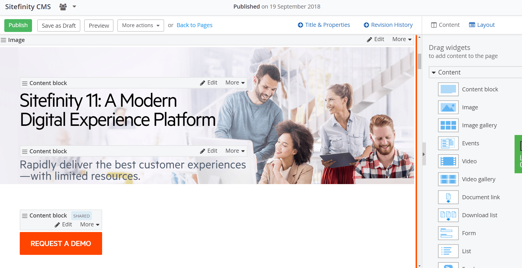 If you create and manage content for your enterprise, I highly recommend that you check out Progress Sitefinity 11 and explore how it can empower you to serve up compelling, multichannel customer experiences easily. After that, why not ask for a demo?