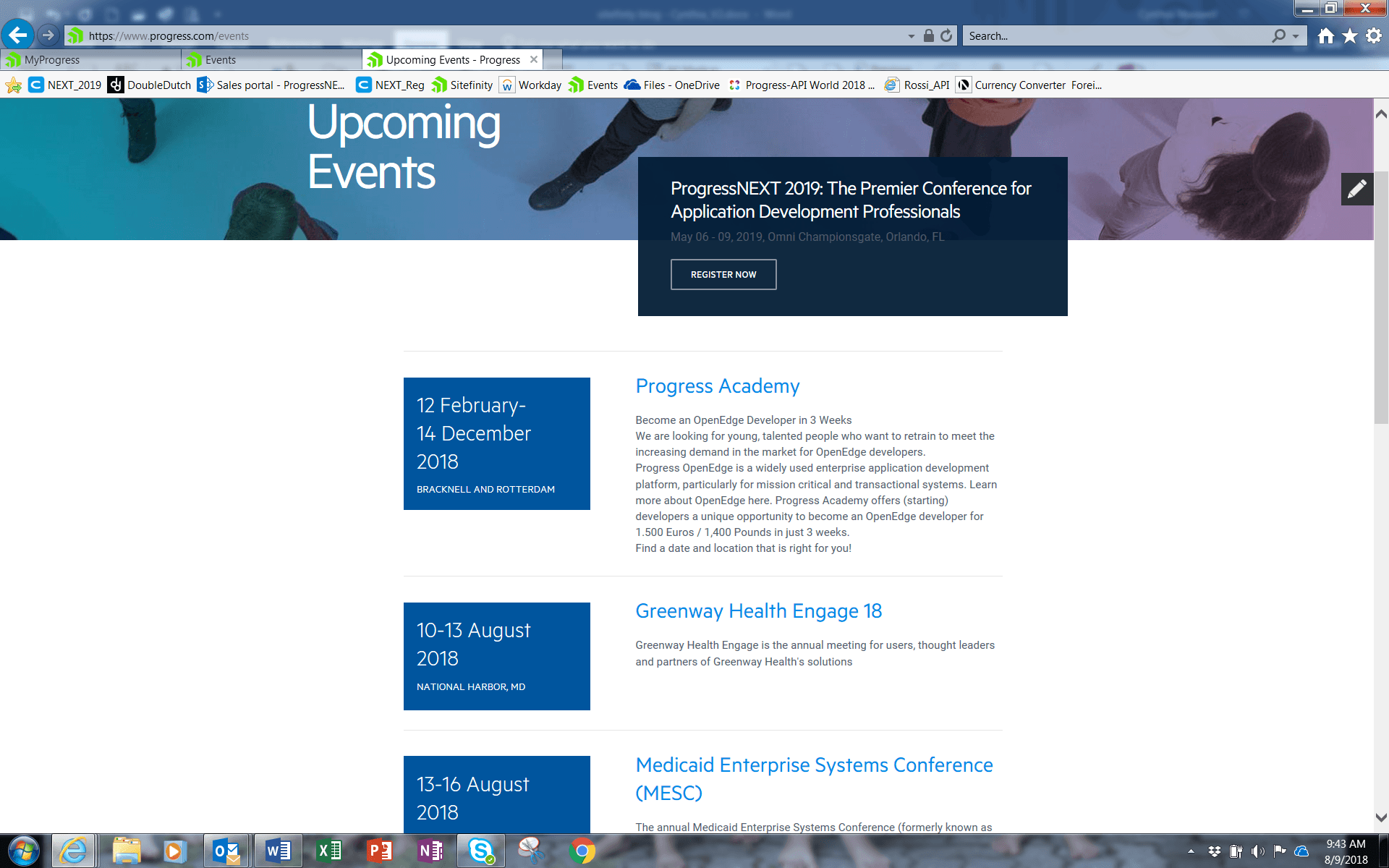 One of my functions on the Progress Events Team is to post all our events on Progress.com/events. This lets our customers, prospects and employees know where and when we are exhibiting and what products we will be highlighting. People who are attending any events will know we will be there and can visit our booth.