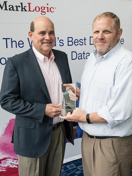 CEO Tom Reidy and Principal Consultant Harry Bakken, of Avalon Consulting, LLC, receive their award at MarkLogic World Chicago.