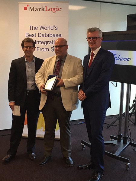 David Ennis, MarkLogic Architect at Tahzoo, accepts their award at MarkLogic World London.Please keep an eye on our Early Access page when the program opens for MarkLogic 10!