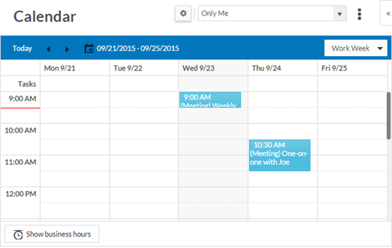 Rollbase includes a calendar tab that lets you create meetings and other events, and to track tasks and their flows. This calendar component in this case synchronizes with the Exchange account. So any meetings you add in Rollbase can be seen on your Exchange calendar as well. Currently, this is just a one-way sync i.e. only meetings created in Rollbase are pushed to Exchange but not the other way around.
