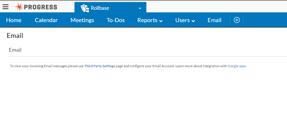 To configure Exchange credentials for your login, please click on the ‘Email’ Tab and follow the ‘Third Party Settings’ link.
