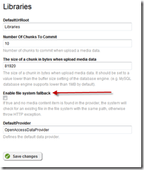 3. Enable File-System Fallback. This is by far the simplest and most recommended option. It tells Sitefinity that if an image is not found in the Library, to fall back to the file system and serve it from there. However, there is a slight performance overhead when selecting this option, since each file-system request must first check to see if it exists in the library.