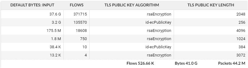 Let's inspect public key lengths and algorithms in our network with Flowmon: