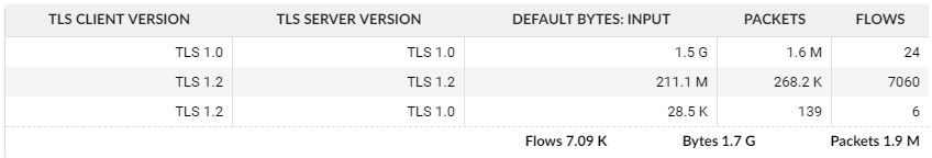 Looks like there is a lot of traffic still using TLS 1.0. We can dig deeper and find out which local services / applications need to be upgraded: