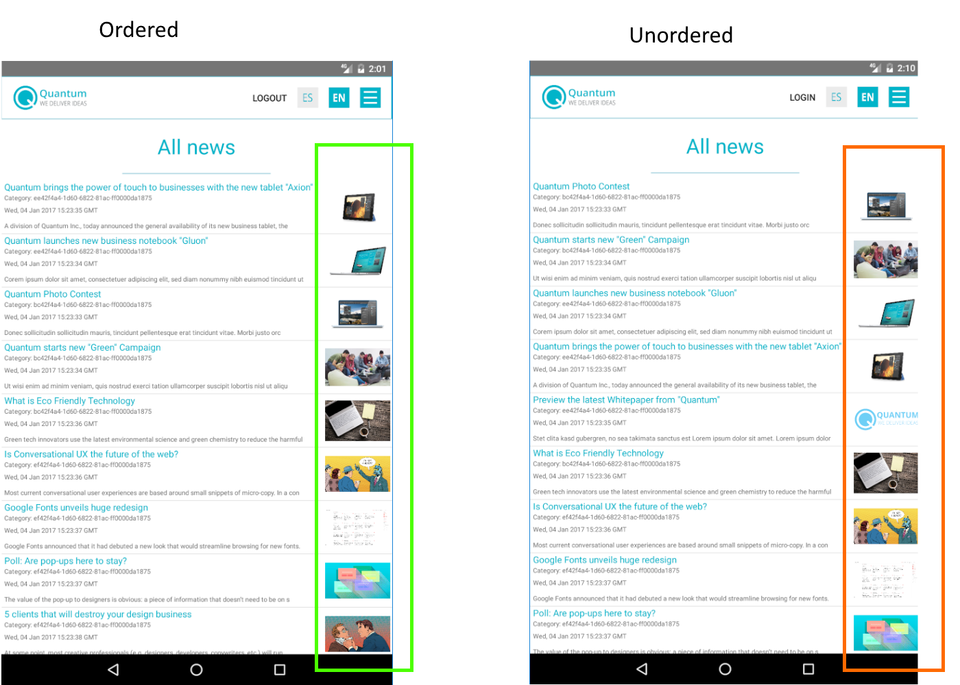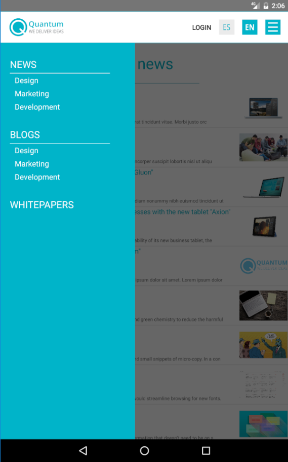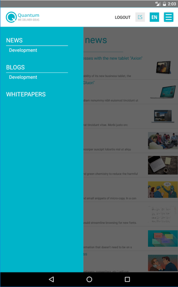 But once you log in, the personalization is triggered and the look and feel is different. The menu is filtered and when you open all news they are ordered in a specific way. The Sitefinity Insight knows that the user is technically oriented and it provides this information to the mobile application, so the app can show the techie stuff on top.