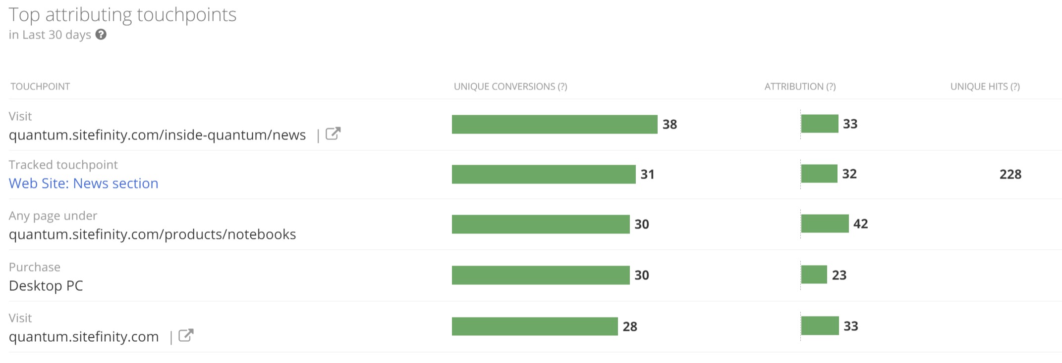 When looking at the key contributing touchpoints across your customer journeys, an indicator of which touchpoint should be surfaced and when may become apparent.