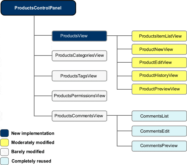 Let us examine the architectural overview of the Products module, with special focus on the Views and their reuse.