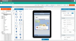One of the most significant additions in the Pacific Spring release is a best-in-class mobile development experience. Now a single solution enables both web apps and mobile apps. A Mobile App Builder (see figure) is completely integrated in the Rollbase environment, allowing you to build mobile front end applications. You have complete control over customizing the applications using standard technologies like HTML5, JavaScript and JSDO (JavaScript Data Objects). Native mobile apps can be packaged for distribution on Apple or Android application stores.