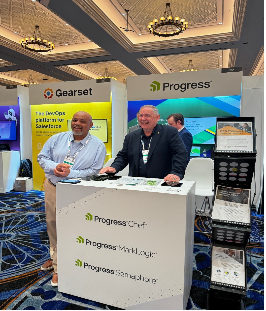 Customers were intrigued by the possibilities of continuous configuration and compliance from an automation standpoint. Many attendees inquired about security integration, automated deployment solutions and infrastructure as a service capability. Many more booth visitors inquired about secure data catalog and the MarkLogic integration with Progress Semaphore, our metadata management software with semantic AI.