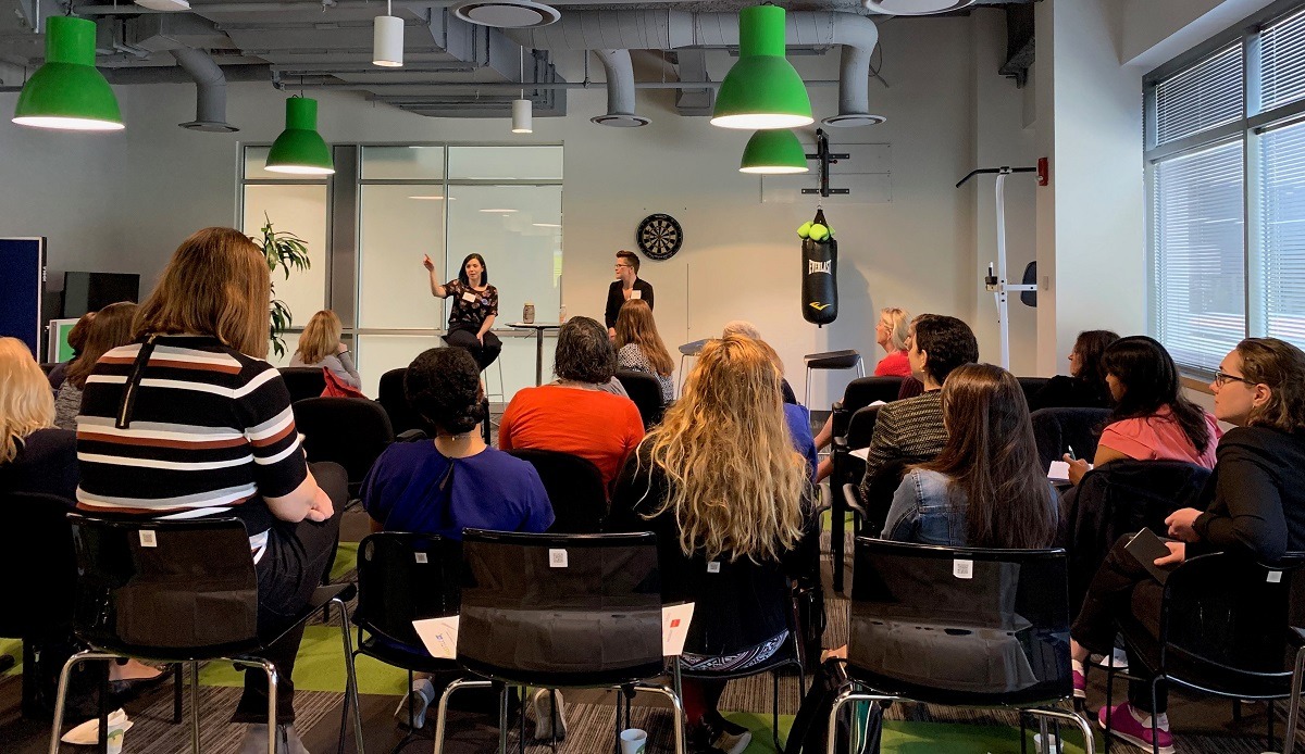 The overall theme of the discussion was women empowering women. For women in the early stages of starting a women’s group, Lohan urged them to “Be visible, be vocal… and prove you have a business case that’s worth investing in.” After all, women’s groups are formed to give women at companies the tools, resources, and support they need to become leaders, which ultimately benefits the business. Lohan continued, “If you want to create space for women to step into leadership skills, then teach them the skills that they want.” Whether it’s public speaking, budget management, or time management; catering the program to teach these skills is what’s important.