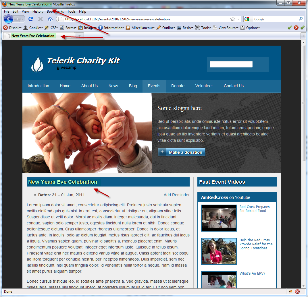 So what can you do with this new opportunity? As an example, I'll show you how you can easily modify the Details View of the Events View Widget to update the Page Title to match the name of the selected event using the Sitefinity Non-Profit Starter Kit.