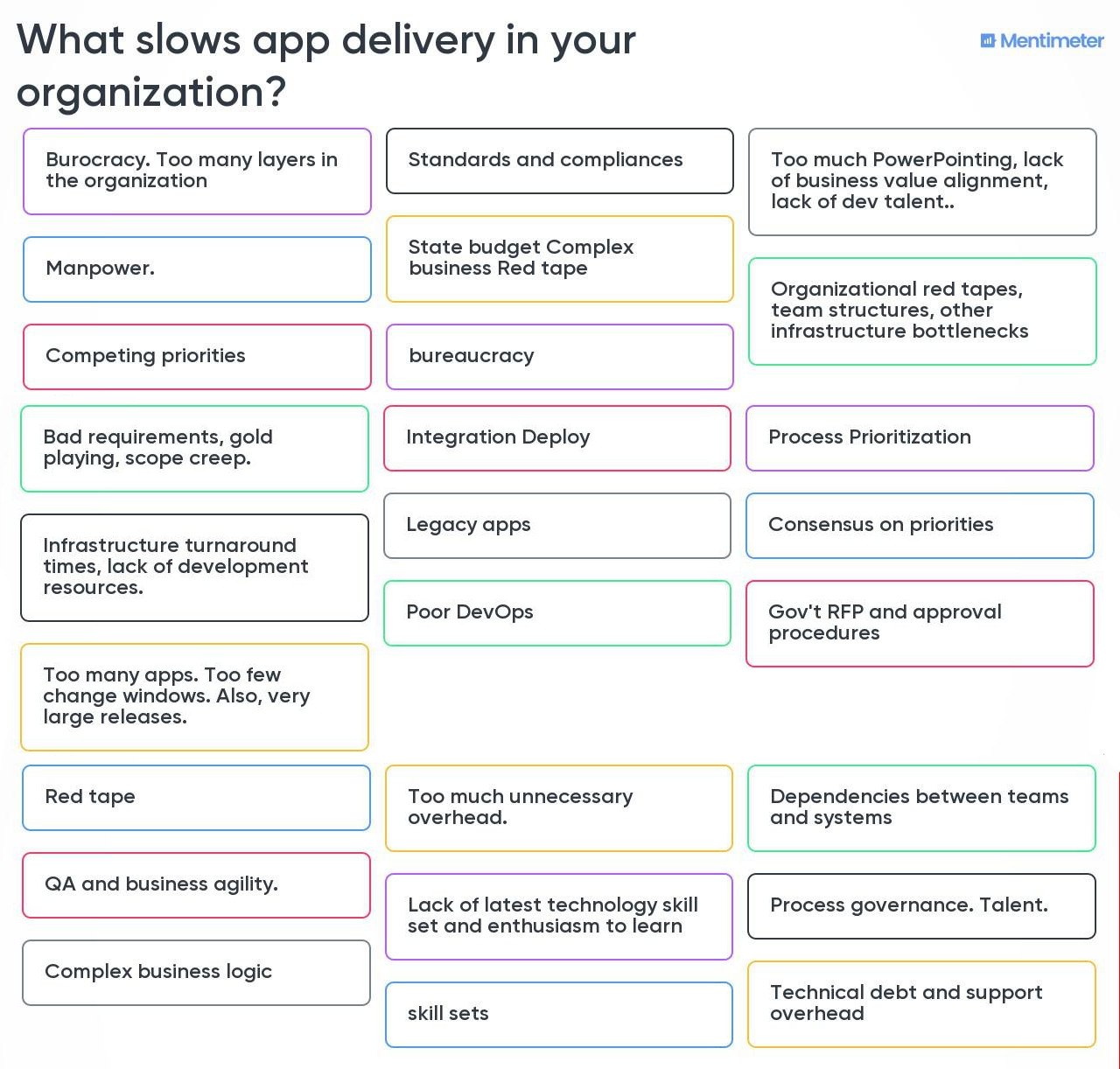 During the presentation, I ran a live poll asking the audience what slows app delivery in their enterprises and below are the results.