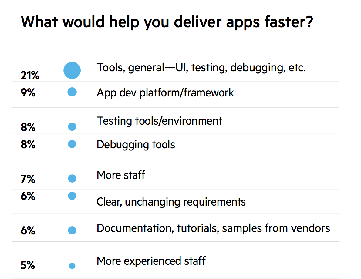 In contrast, we asked the same question to 5,500+ app professionals in a Progress-sponsored survey and got very different answers. However, despite that, the theme of talent surfaced again with 12% citing a need for more of it.