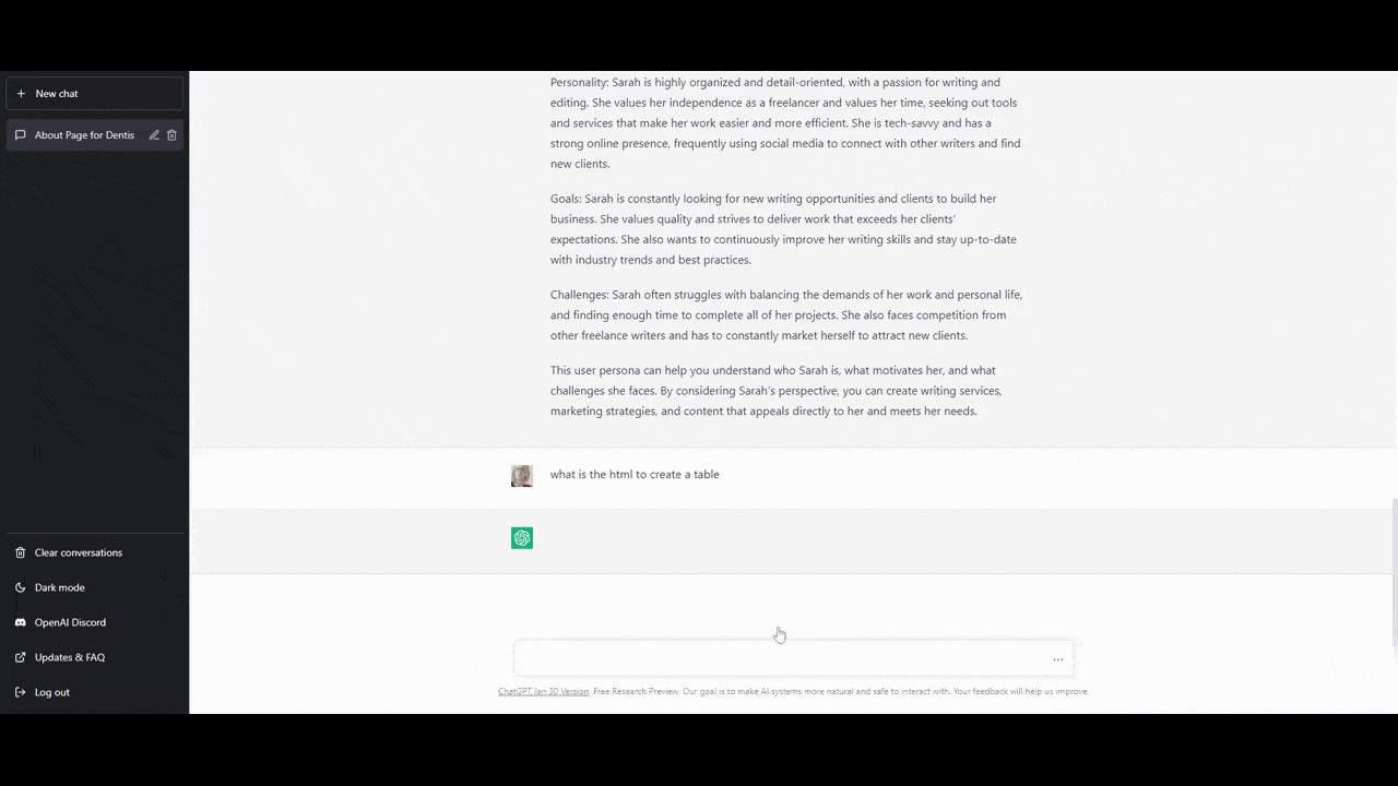 I thought I’d try something else and ask ChatGPT to help me with a specific UX research task: Creating a user persona.