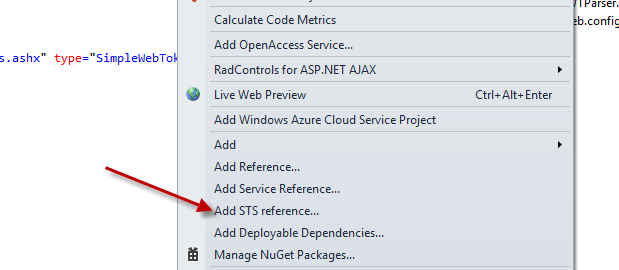 In order to do this, all that’s left to do is to take apart the Sitefinity STS and incorporate the pieces in your app. If you take a look the Sitefinity STS is really not that complicated to begin with. It is just an HTTP Handler with some helper classes to form a token and it’s registered in web.config to be mapped to the route ~/mysts.ashx