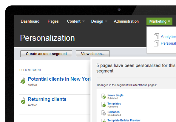 Online audiences don’t read, they skim. In fact, we frequently have less than 10 seconds to engage online audiences. This problem becomes even worse when you consider that we often have very diverse audiences for our websites. Bottom-line, if we’re forcing visitors to click around to discover interesting content, then we’re wasting precious time. Sitefinity’s personalization feature allows us to immediately connect the right person to the right message by defining our audiences, transforming the content and then testing the result.