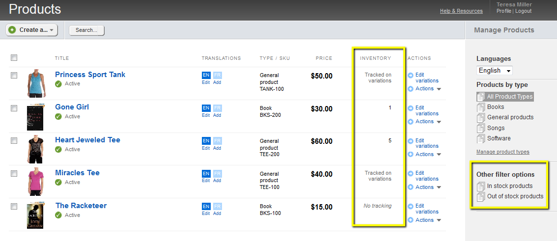 Inventory can be tracked at the product level or at the product variations level. Products can remain visible on the site even if they are out of stock which will be handled by showing stock availability messages on the detail page allowing your customers to read about the product which will help increase SEO rankings. Inventory management will prevent over selling allowing orders to be fulfilled and shipped resulting in happier customers.
