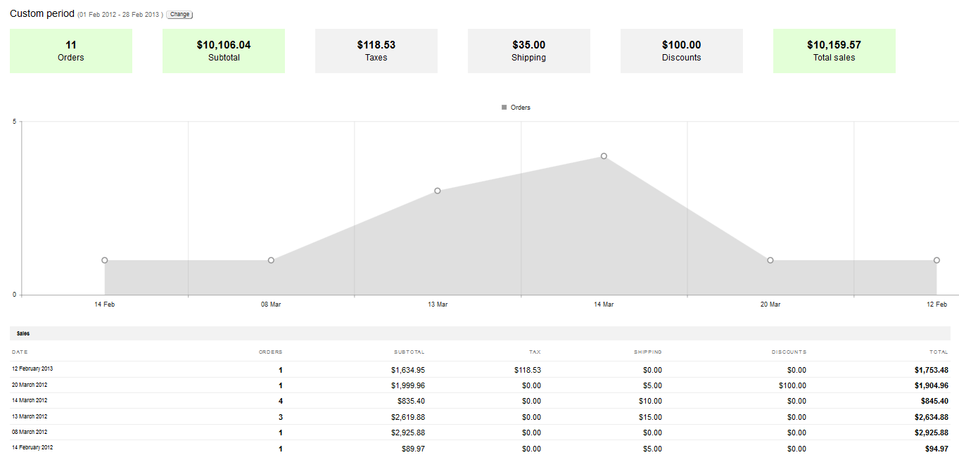 A merchant of any Ecommerce store would like to see subtotals, tax, shipping, discounts and gross sales for a specified date range. So, we added a new Sales Summary Report showing aggregated data for each day. We show the merchant an easy one-glance overview of totals at the top, followed by a graph representation of the same data to notice any trends. We also show a detailed view for each day for further data analysis purposes. An option to export the report is also present which allows the merchant to use the data across other mediums.