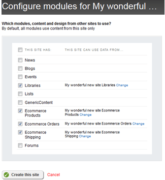 You can now manage multiple Ecommerce sites within one Sitefinity instance giving you a powerful multisite environment. There are three Ecommerce providers: Catalog, Shipping and Orders and you can share providers across sites or they can be independent. This allows for the greatest flexibility when configuring your multisite environment.
