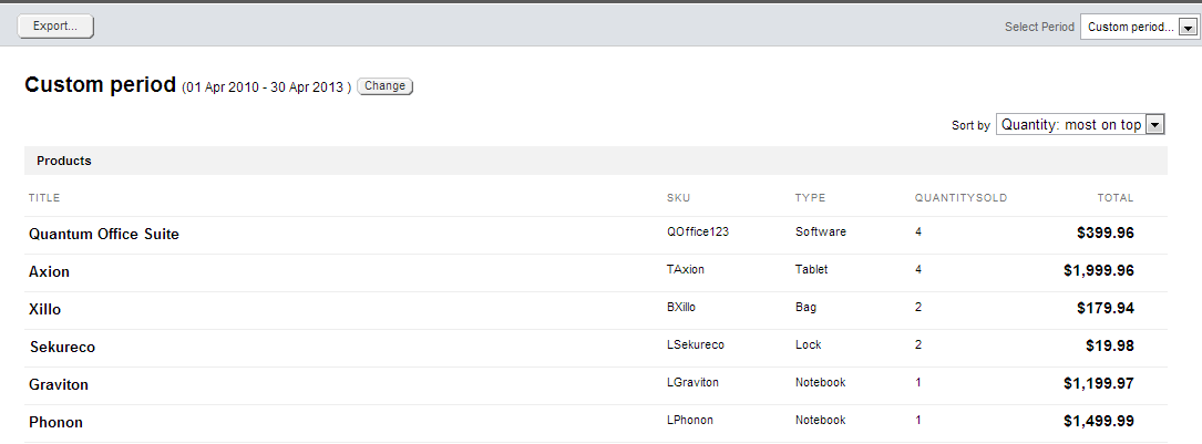 A new report shows the Top Selling products and can be filtered by a date range or sorted in various ways. The data can be exported to excel.