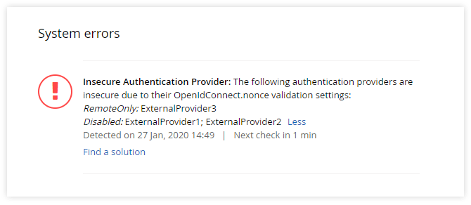 We believe these extra settings are the right thing to do to let you continue developing locally or under HTTP. But since they’re essentially exceptions with certain security implications, it made sense to give Sitefinity admins a tool to always keep an eye on them. The System Status widget was updated accordingly to always display insecure authentication provider warnings.