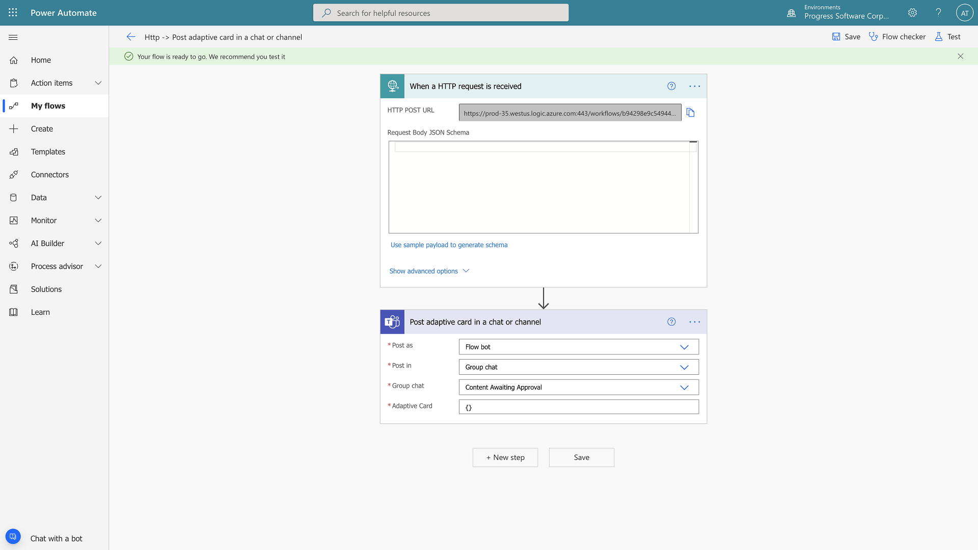 Click "Done" and save the flow. Do the same test again by creating a new news item and send it for approval. If everything is fine, you will receive only one adaptive card.