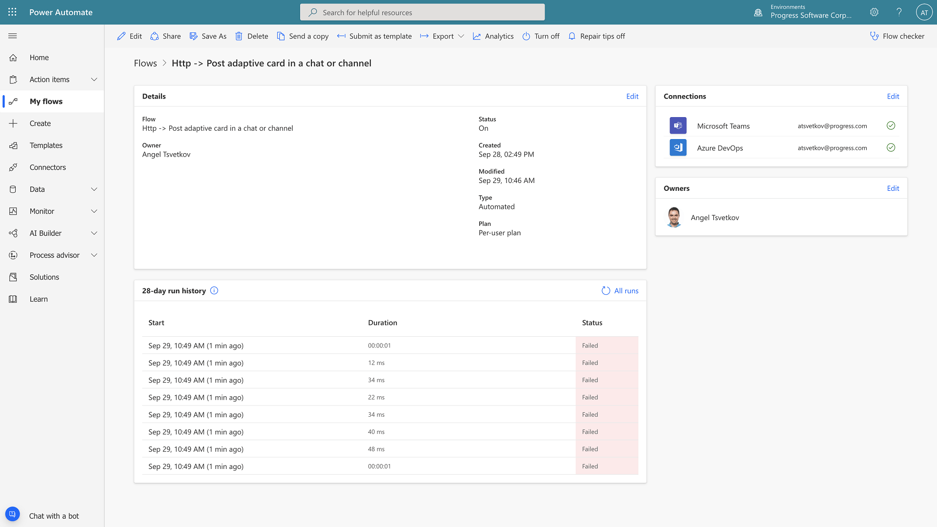 Go ahead and create a news item and submit it for approval. You will notice that your Power Automate flow was executed 8 times, and all of them are failed. There’s nothing to worry about.