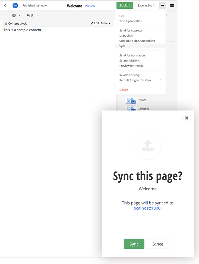 Adding new content is as essential as unpublishing content when you need to—for example, content that appeared on the live website by mistake or content that is not relevant anymore. SiteSync gives content editors the freedom to handle these scenarios independently and in a timely manner, without getting administrators involved.