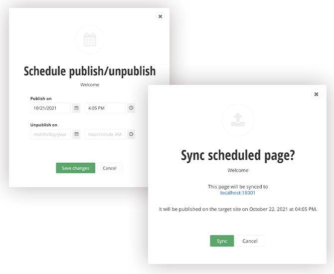 In the cases where a specific content item needs to become available online at a particular time, SiteSync handles both steps in the process for content editors: