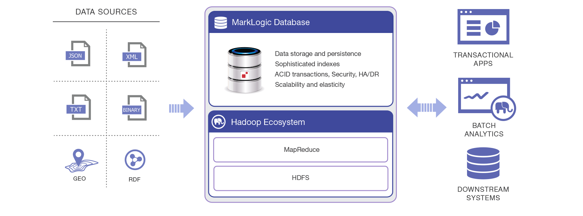 The MarkLogic Connector for Hadoop provides a seamless integration