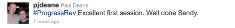 The highlight of today was certainly the Intro to Business Process Management (BPM) workshop by Sandy Kemsley, an analyst with over 15 years of experience with BPM. Kemsley provided product and brand agnostic coverage on BPM, giving background on its history, explaining BPM Notation, and highlighting the latest trend of integrating BPM with Social Software. Here are some of the audience’s tweets about Kemsley’s workshop:
