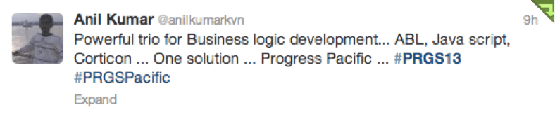 Find out what other people have been saying out Progress Exchange 2013 and keep #PRGS13 trending on Twitter by following along for live tweets, Trivia, pictures, and more!